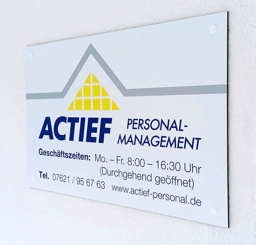 | 18.12.2025 | Neue Chance gesucht? Für Actief-Personalmanagement in Lörrach haben wir ein Firmenschild gestaltet und umgesetzt. |